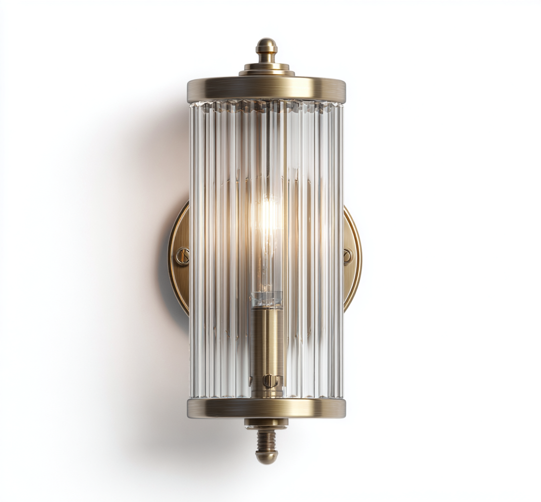Applique metallo e vetro 12x10x26 cm oro - trasparente per soggiorno stile moderno