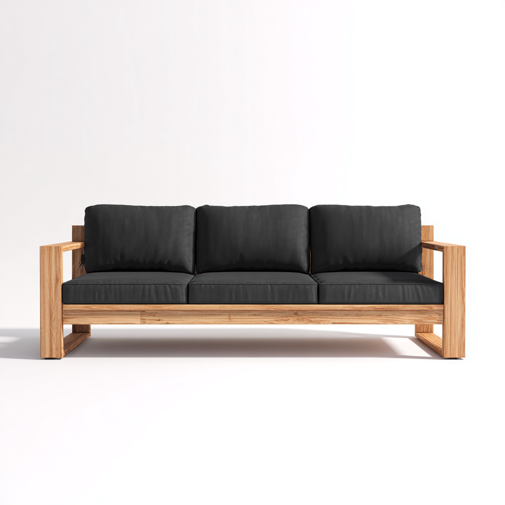 Divani da esterno legno e tessuto 205x80x85 cm - legno naturale - nero - design moderno