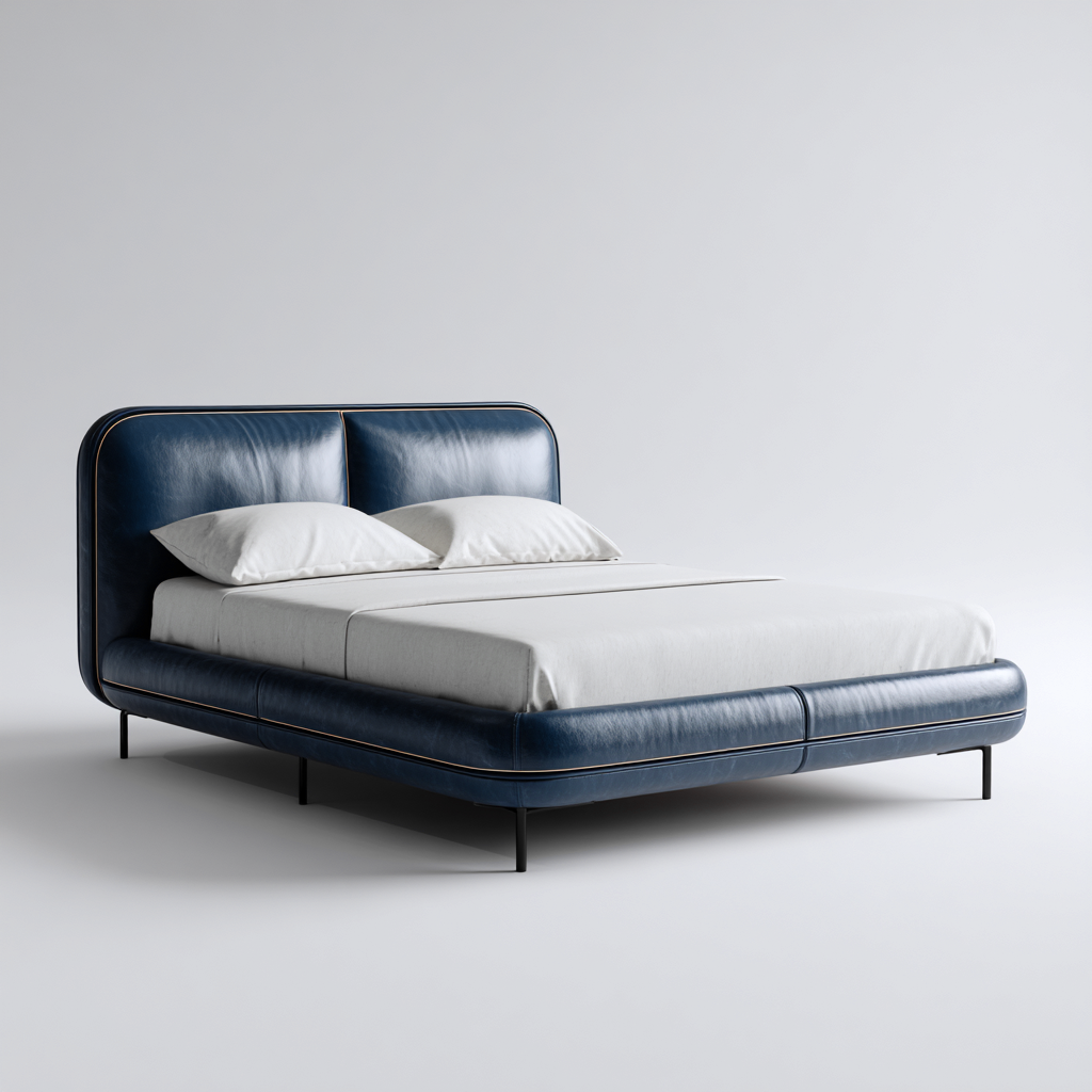 Letto matrimoniale pelle e metallo 200x180x110 cm blu - nero per camera da letto design contemporaneo