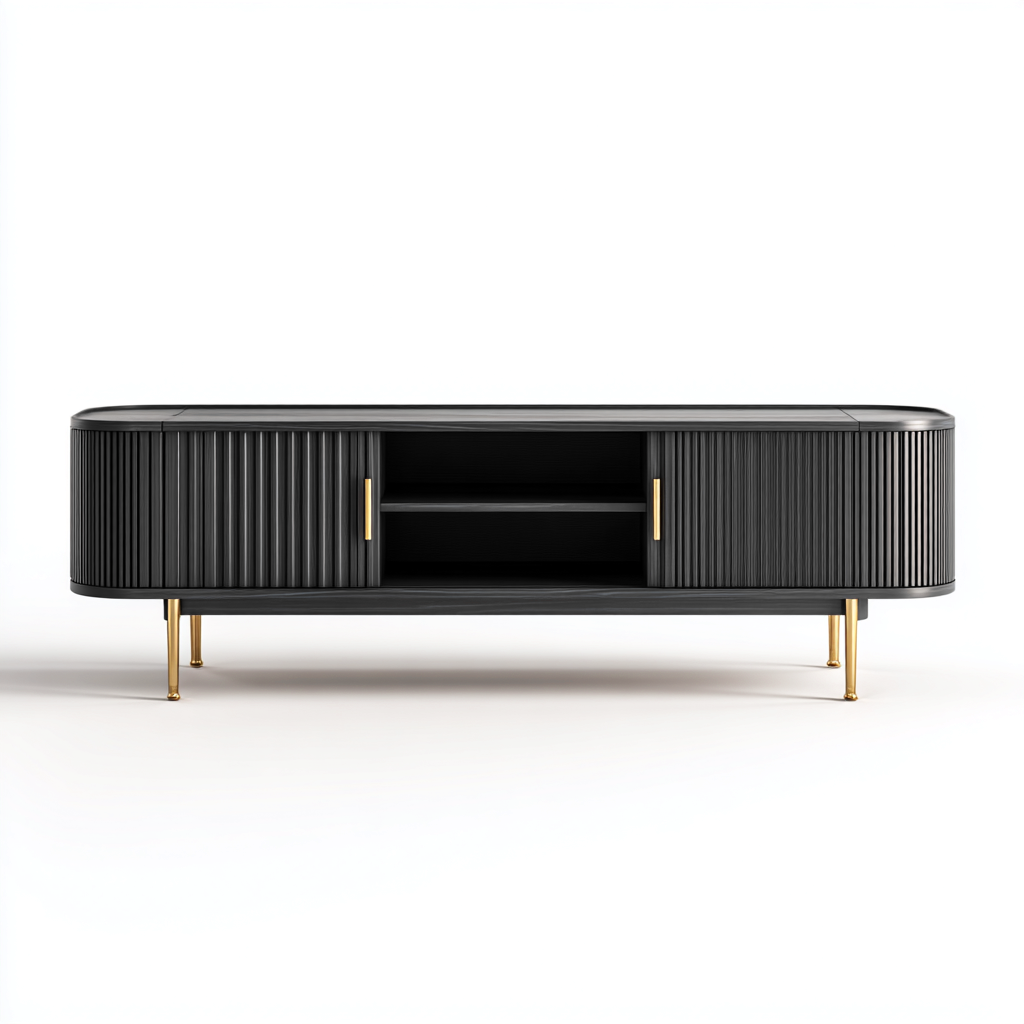 Mobile TV - legno composito - 180x40x55 cm - nero - oro - per soggiorno - design moderno