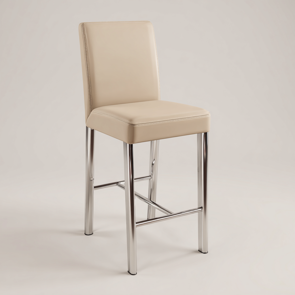 Sgabello da bar - pelle - metallo - 45x45x105 cm - beige - cromo - per sala da pranzo - design moderno