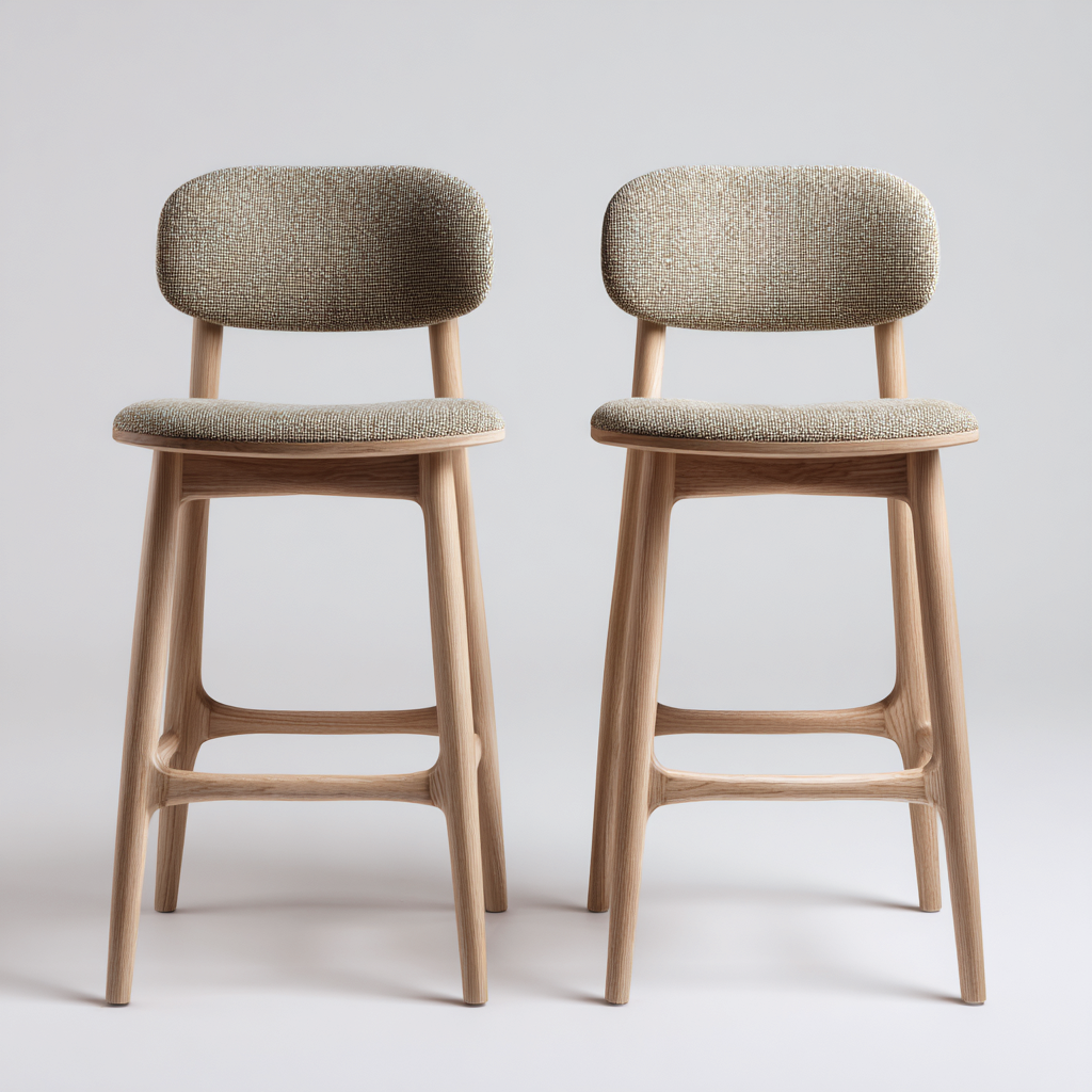 Sgabello da bar set di 2 in legno e tessuto 45x45x95 cm - beige-legno - design nordico