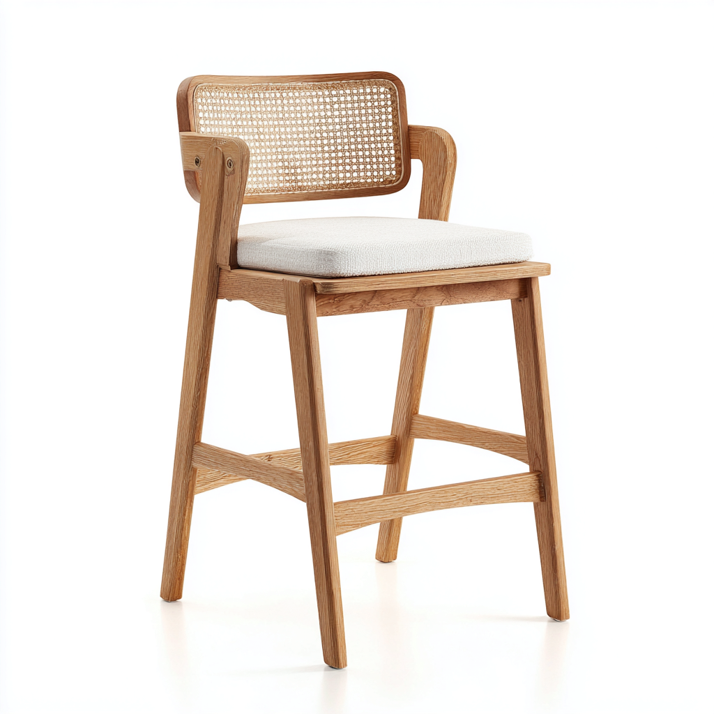 Sgabello da bar in legno e rattan 45x48x95 cm - beige-legno - design naturale