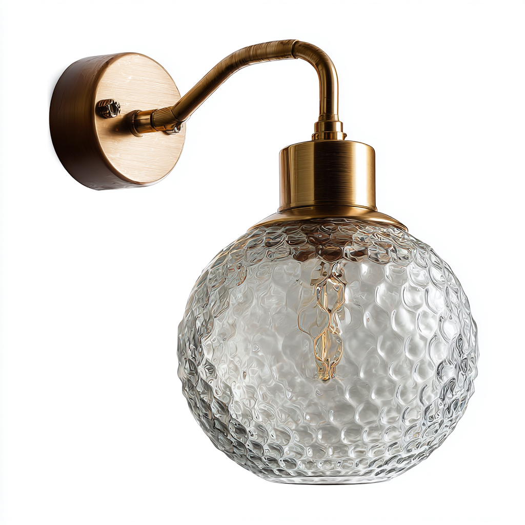 Questa applique moderna combina una struttura in metallo color oro con un diffusore in vetro trasparente, offrendo un'illuminazione elegante e adatta a vari ambienti domestici.