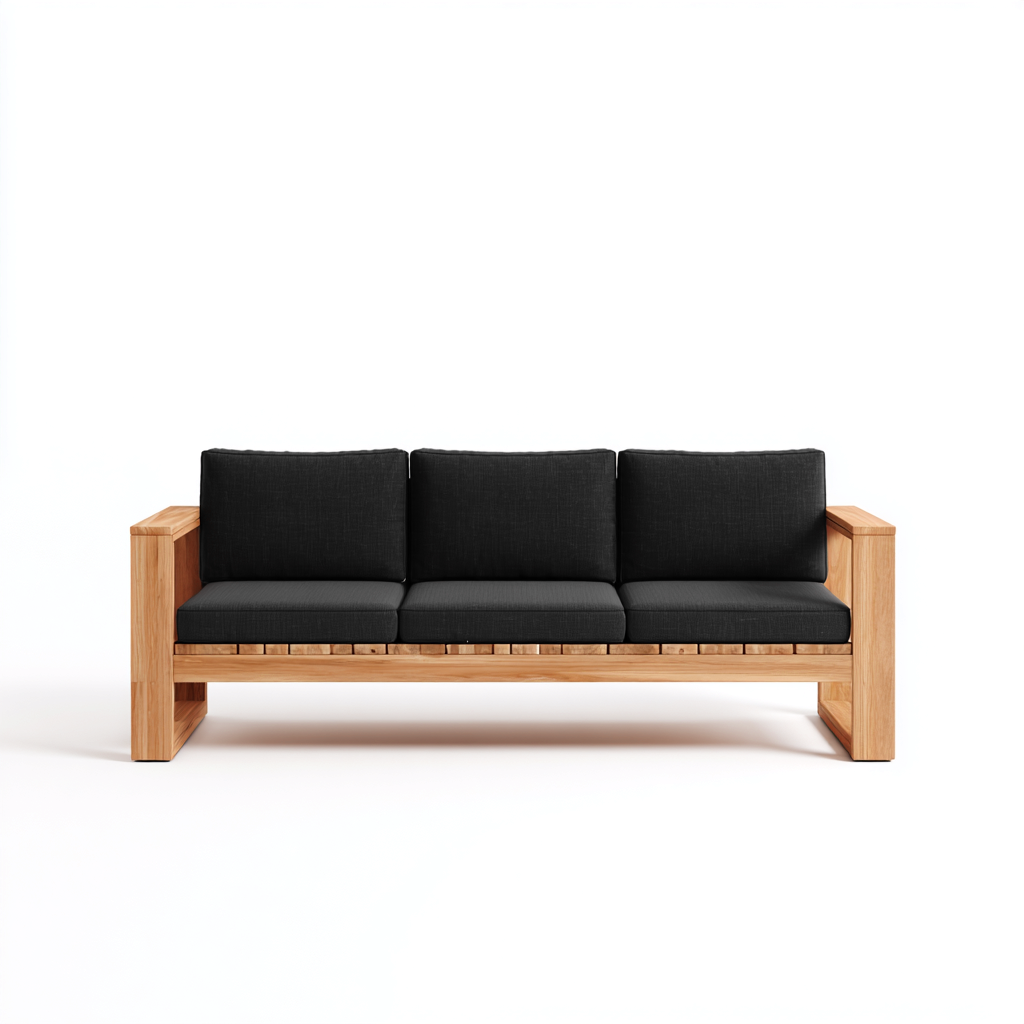 Questo divano da esterno a tre posti offre un design solido e moderno, ideale per terrazze, giardini e spazi outdoor. La struttura robusta e i cuscini confortevoli garantiscono un'esperienza di seduta piacevole.