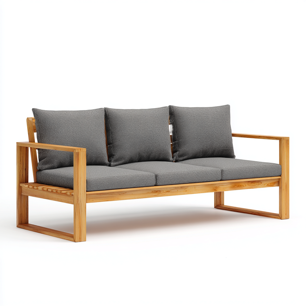 Questo divano da giardino a tre posti è progettato per offrire comfort e stile negli spazi outdoor, risultando particolarmente adatto per l'uso in giardino. La struttura solida in legno e il design moderno rendono l'ambiente esterno più accogliente e raffinato.