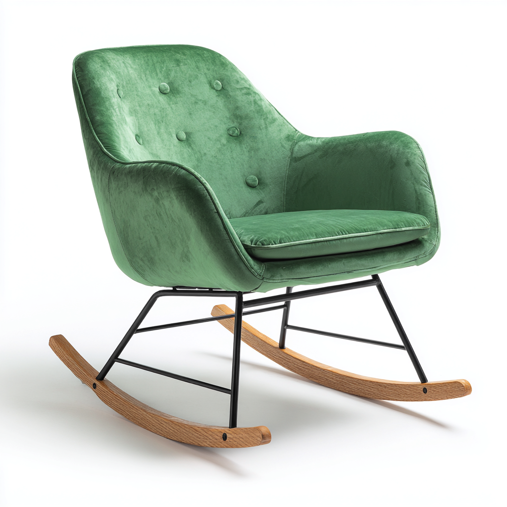 Questa sedia a dondolo in velluto verde offre un design moderno ed elegante, ideale per soggiorno, camera da letto e zone relax.