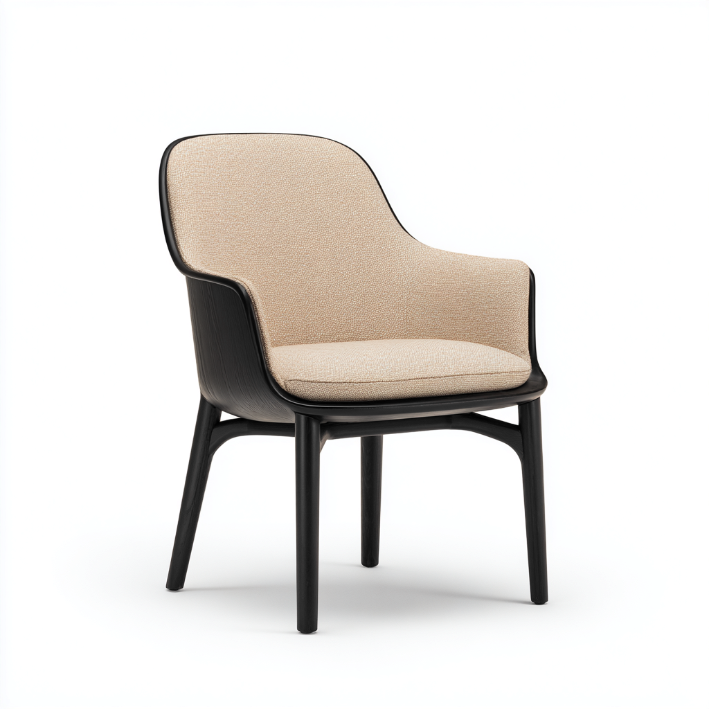 Il profilo ergonomico permette una postura naturale, mentre i braccioli integrati aumentano il comfort. Il design sobrio facilita l'inserimento in diversi contesti domestici come sala da pranzo, soggiorno o studio.