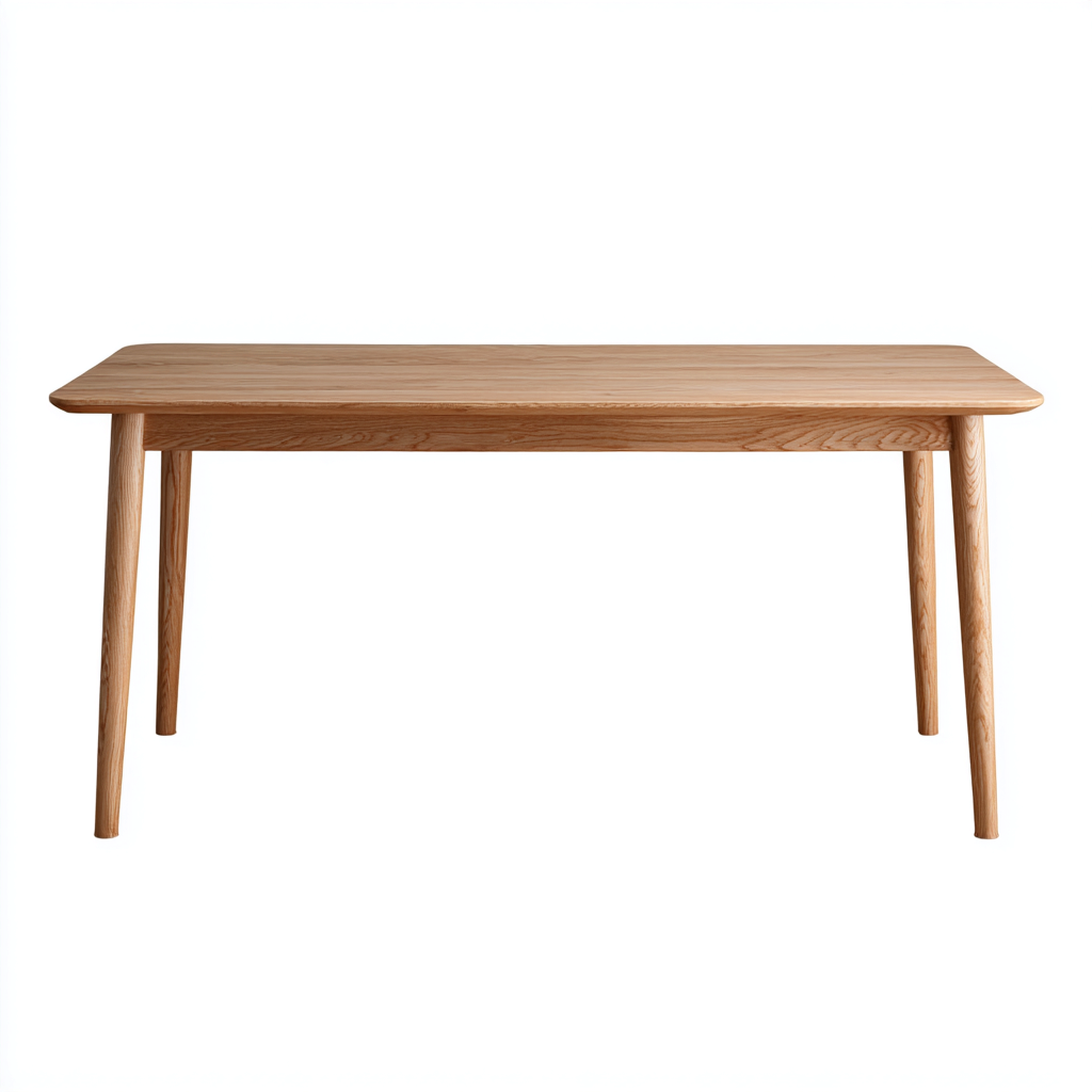 Tavolo da pranzo in stile moderno realizzato in legno naturale, caratterizzato da linee pulite e struttura stabile, ideale per creare uno spazio conviviale nella sala da pranzo.