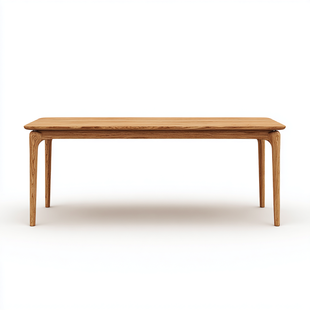 Tavolo da pranzo in legno massello con linee morbide e profilo elegante, ideale per arredare con stile moderno e naturale gli ambienti della sala da pranzo.
